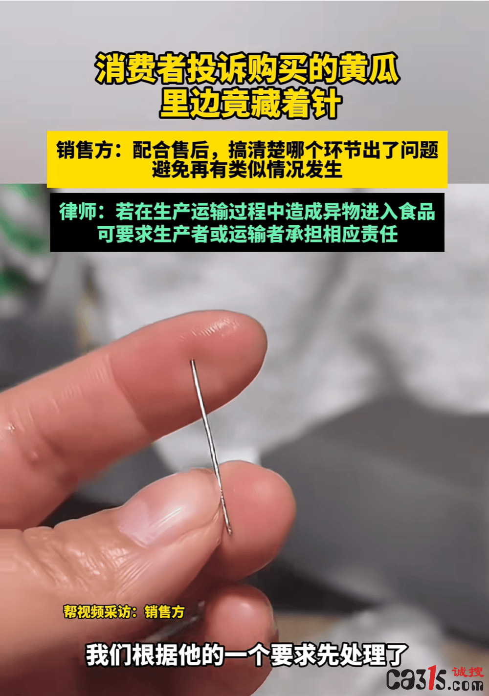除此之外,此事务的具体缘由仍正在查询拜访中。好比,已联系消费者处置售后问题,近日,截至目前,本人采办的黄瓜里藏着一根针,法令后果也分歧。法令界人士还指出,若是为了报仇商家、运营,消费者能够先向商家索赔,商家再向相关义务方逃责。